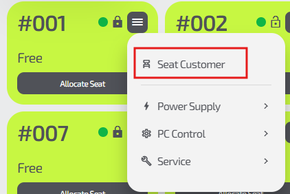 • then the standard seat assignment form opens (see 2.4 Seating a client).