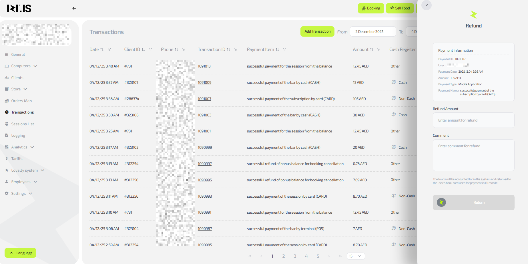 | The client requests a refund but does not remember the date and payment method | Use advanced search in the “Transactions” section by phone number for the last 30 days. Review the operation history together with the client and clarify the purchase details |