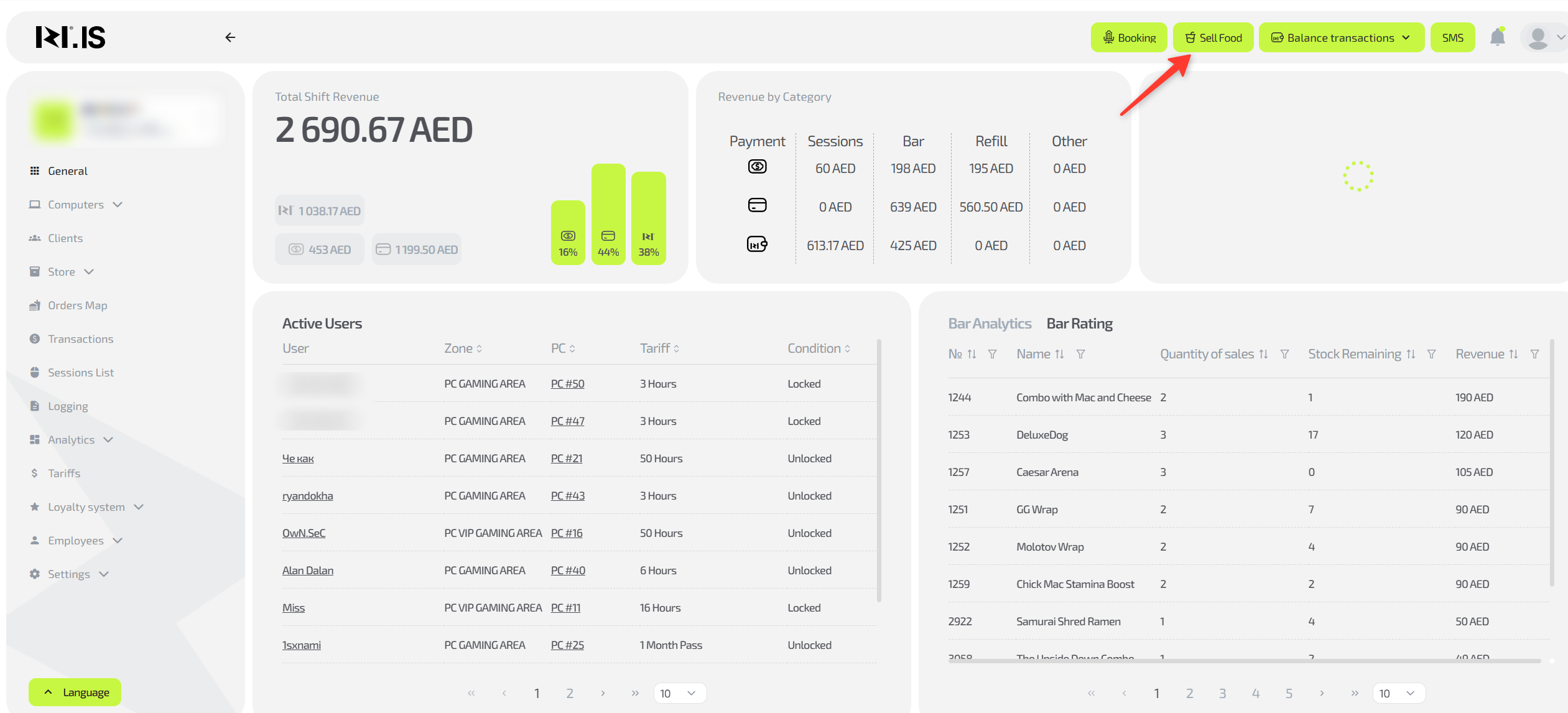 In the top right corner, click the “Sell food” button.