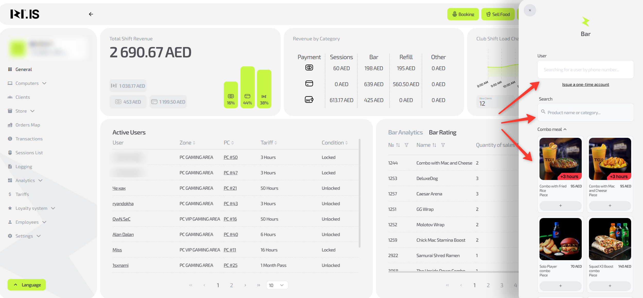• Products and bar categories are configured in the system
