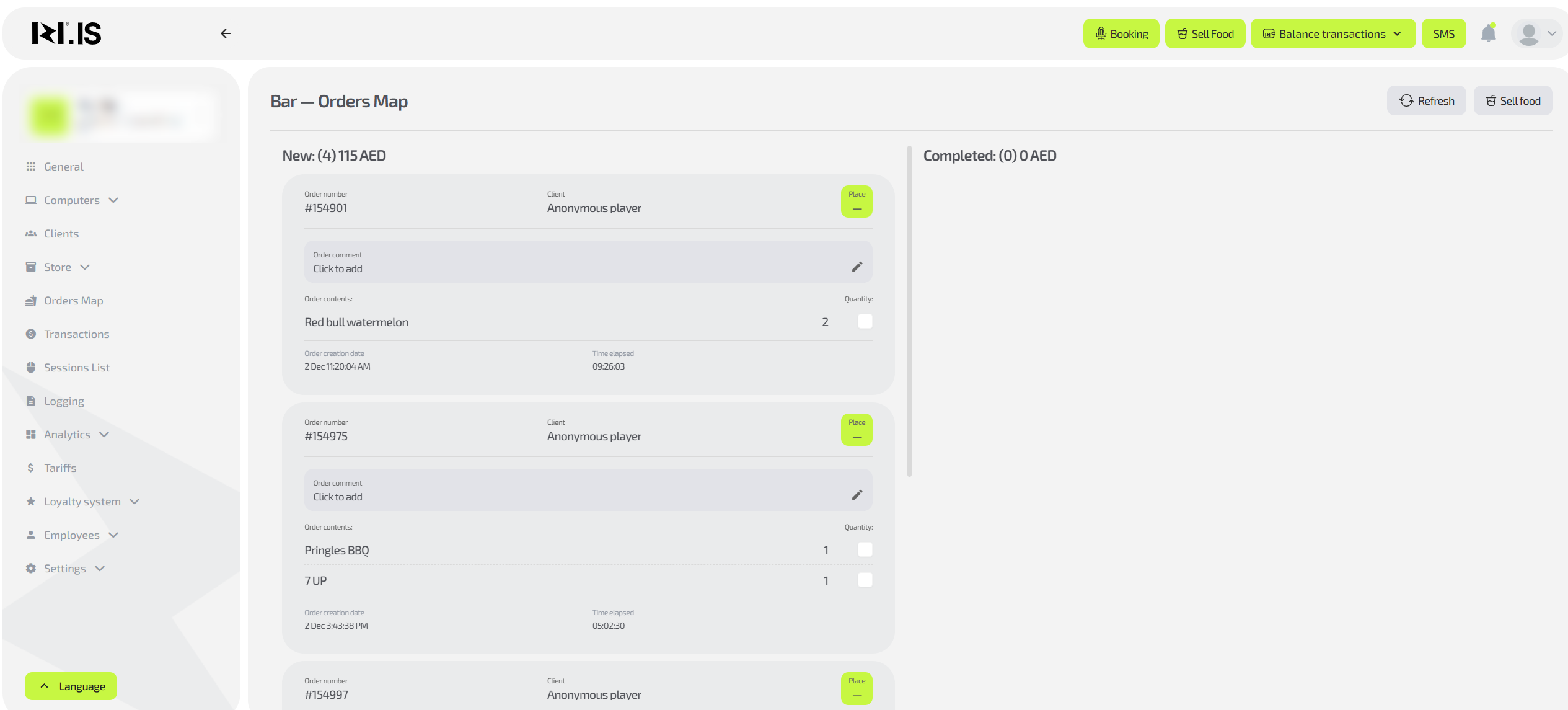 Then choose the payment method and click “Place order”. After that, you need to take the payment from the client. If “Postpayment” is selected, the client will pay before leaving the club.