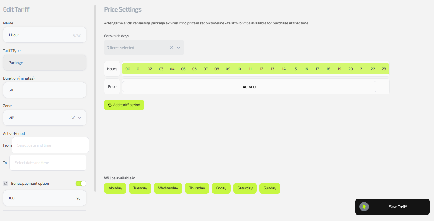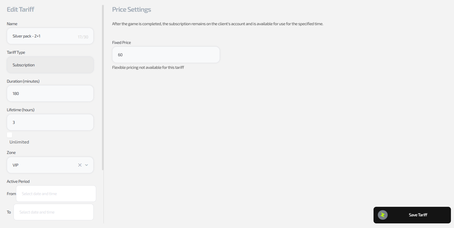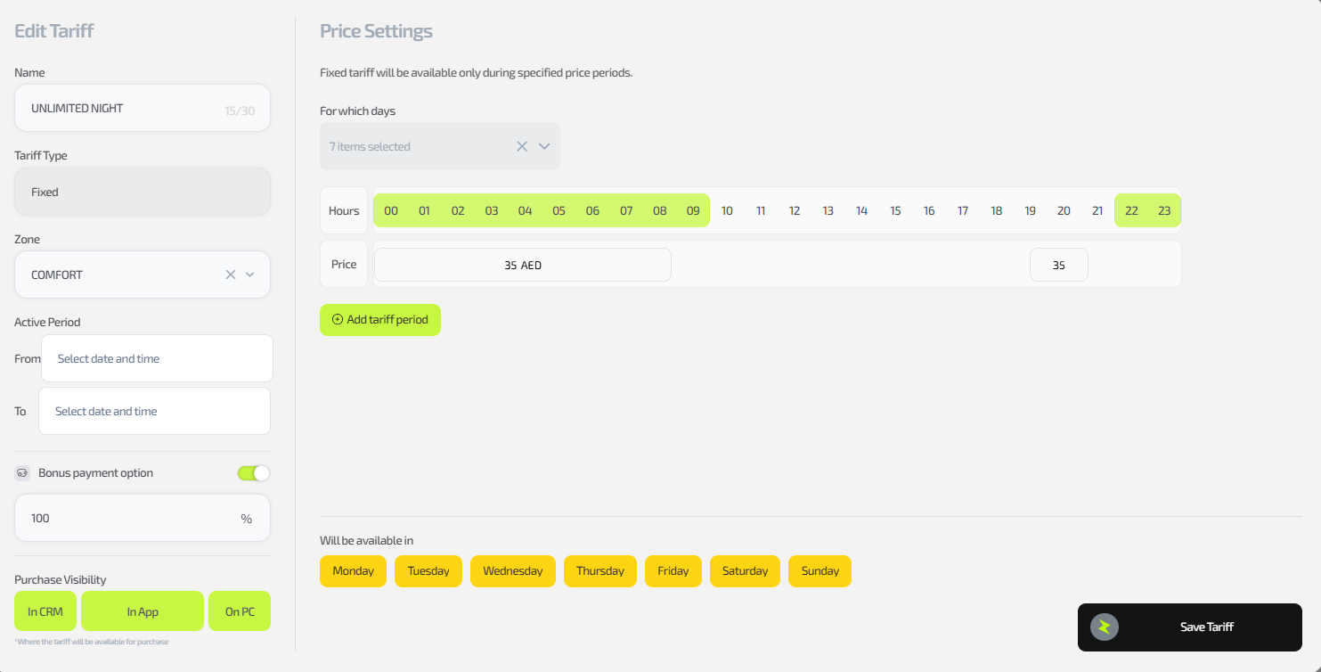 ⚠️ Important: creating and editing tariffs is not available under an administrator account — only under the owner account.