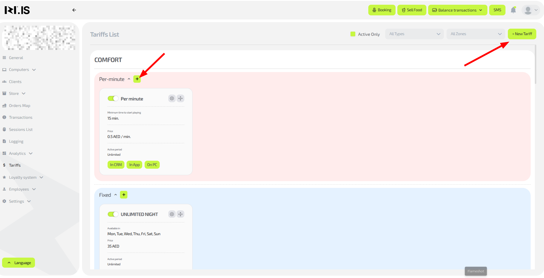 ⚠️ Important: Creating and editing tariffs is available only under the club owner account. This functionality is not available under an administrator account.