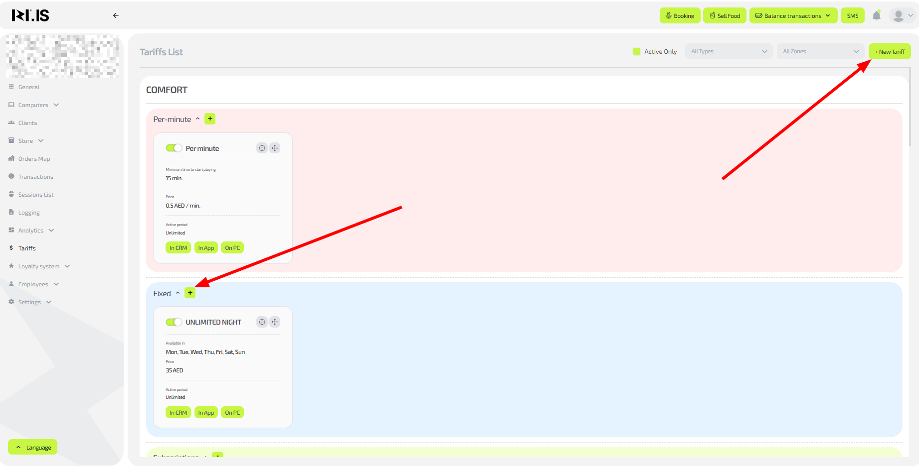 - Open the settings of an existing tariff or click “+New tariff” to create one.