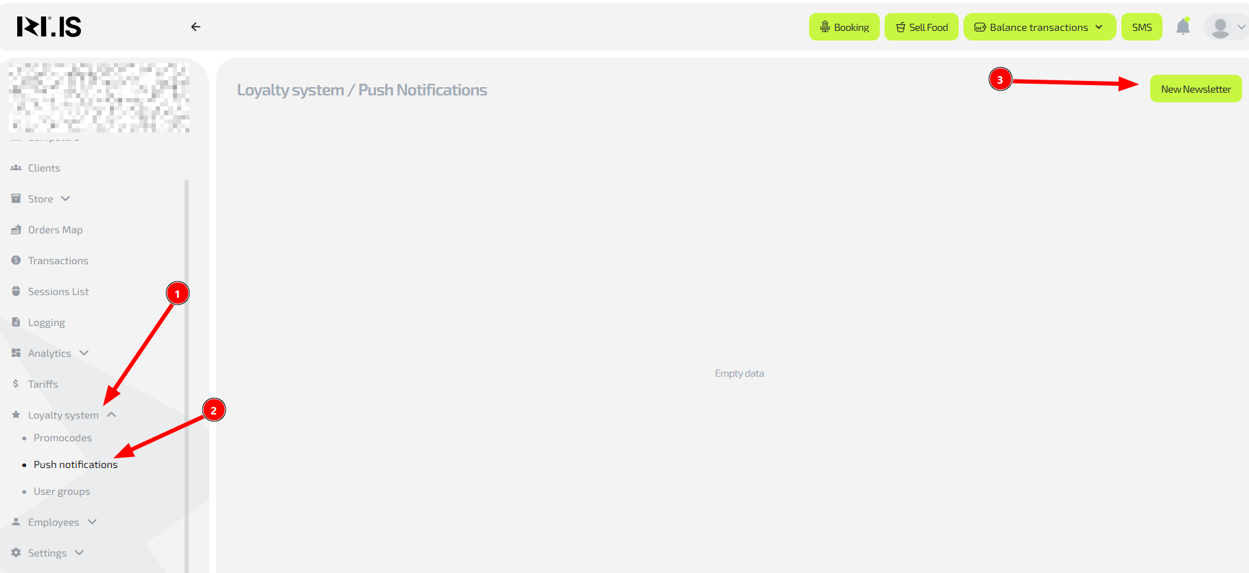- Go to “Loyalty system” → “Push notifications”