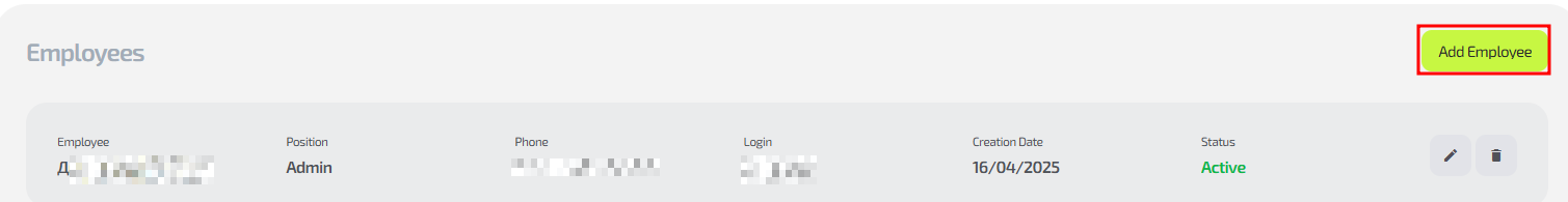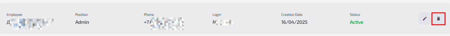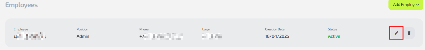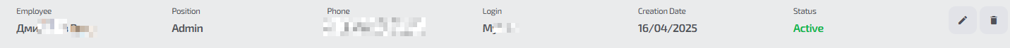 1. In the required employee’s row click the pencil icon — an additional window with account information will open