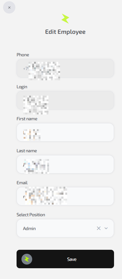 • enter the employee’s phone number in the search field; after the list appears, select the required account — the main account information will open