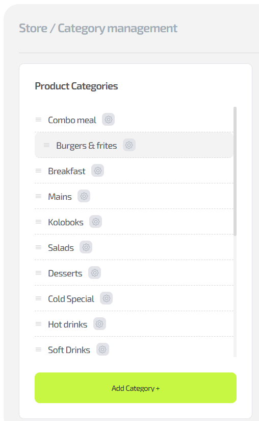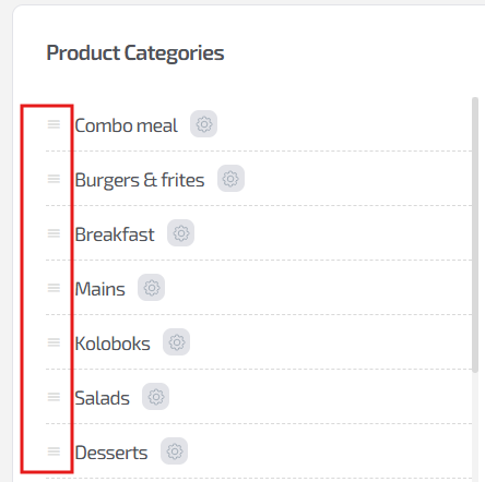 - Ability to change the order of categories by dragging them using the “three lines” icon.