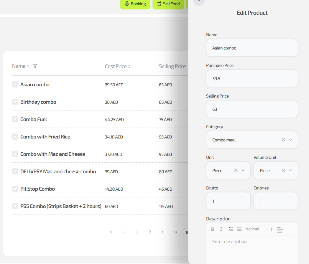 Important: Without gross weight and calories specified, the item will not be created or updated.