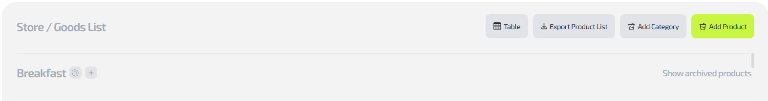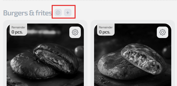 Each category is separated by a header. On the right side of the name there is a gear icon, which opens the category editing window (see 3.6.1) and a “plus” icon to add a new item to the category.