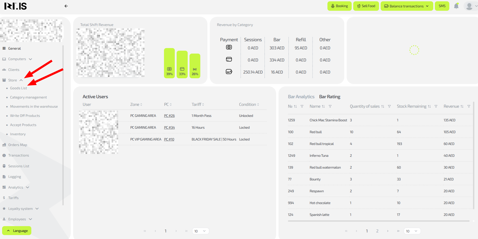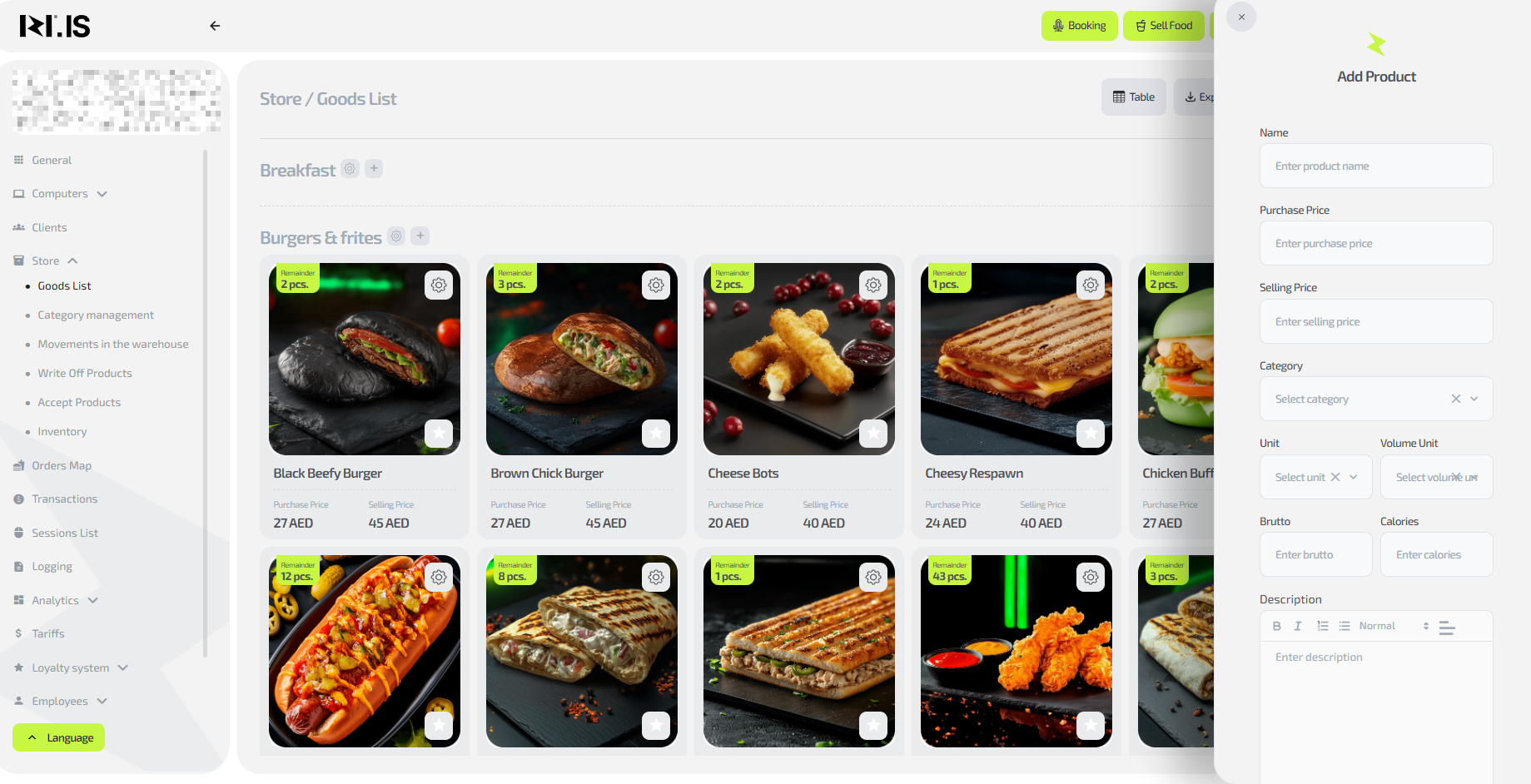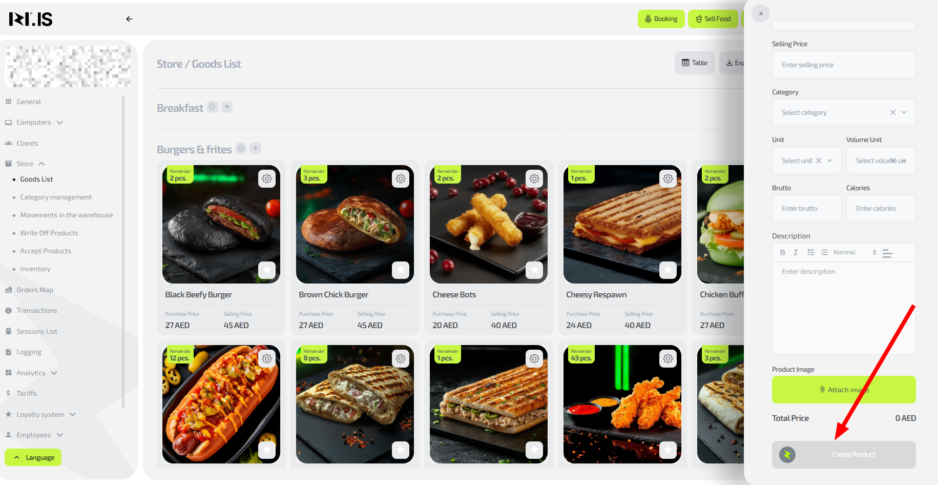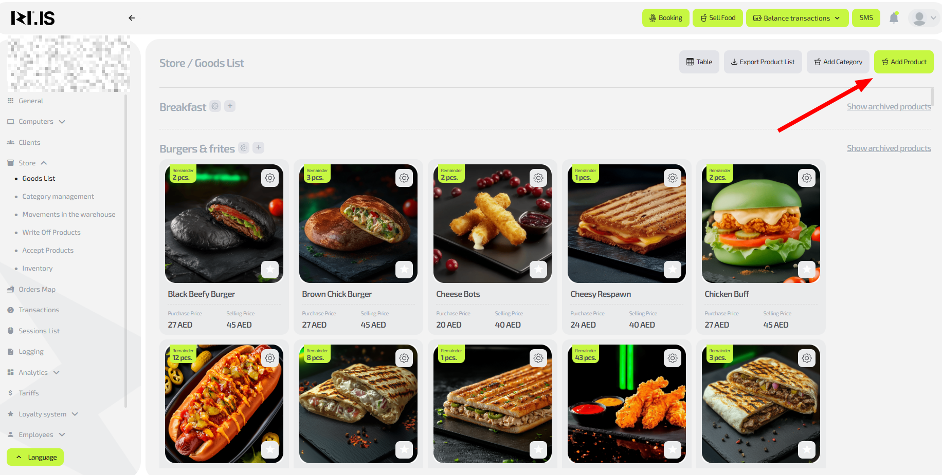 - To add an item, on the main page in the left menu select “Store / Items list”.
