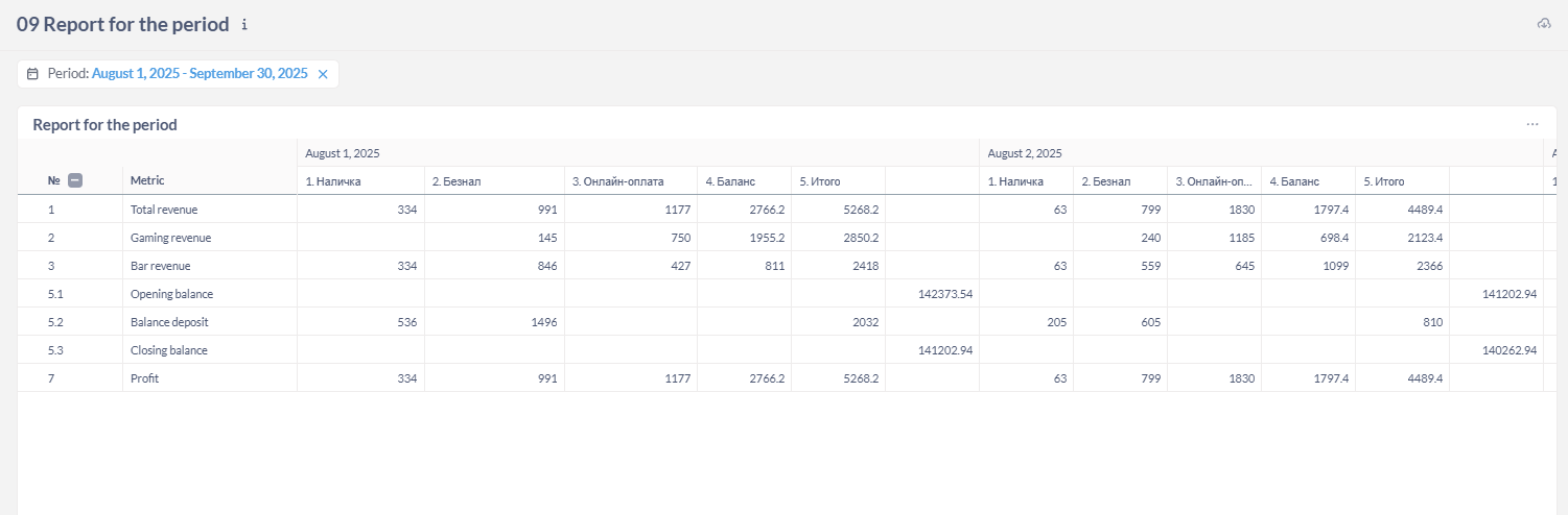 Tip: Always compare the current period with the previous one — this helps to immediately notice growth or decline in key metrics.