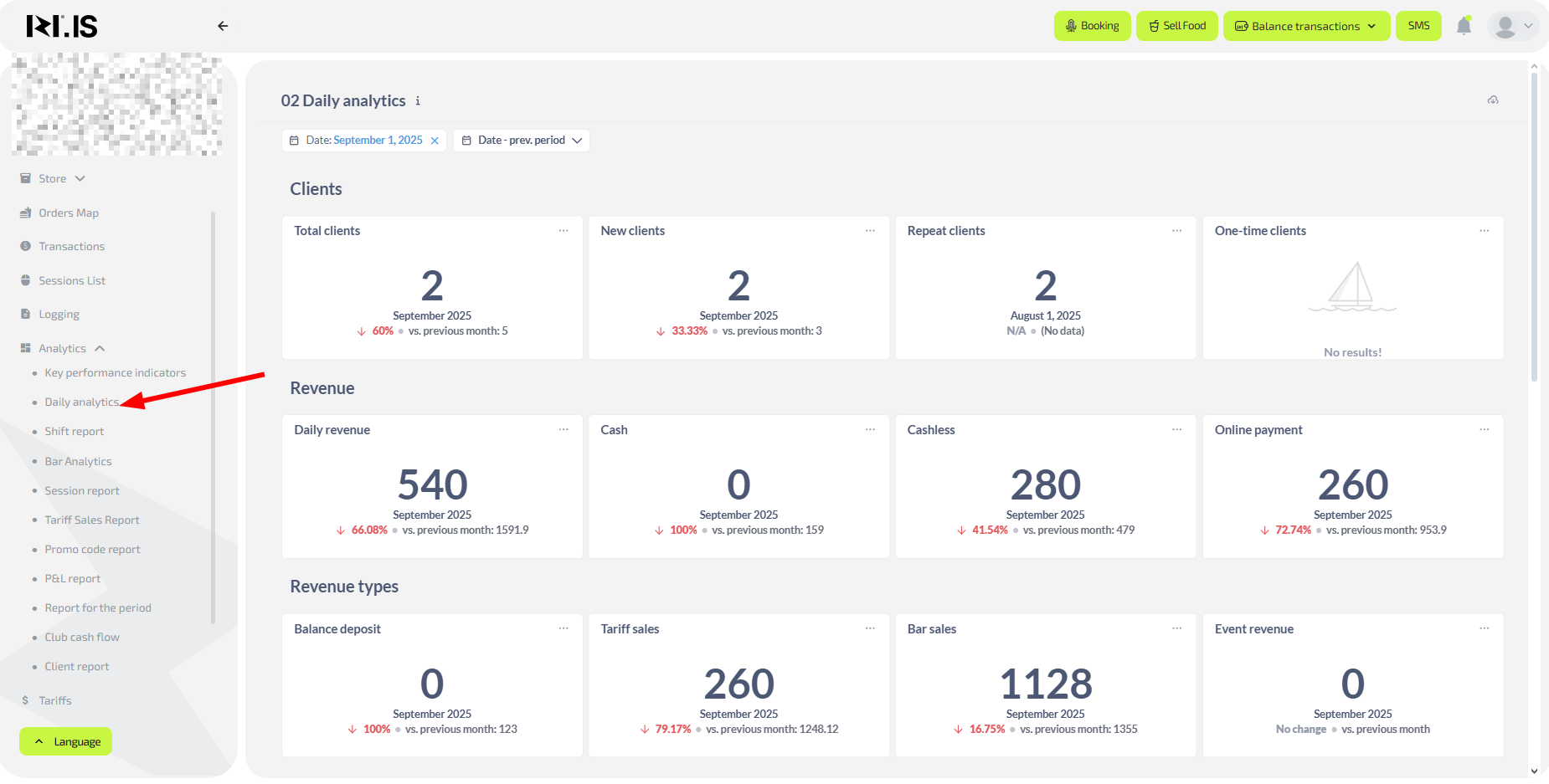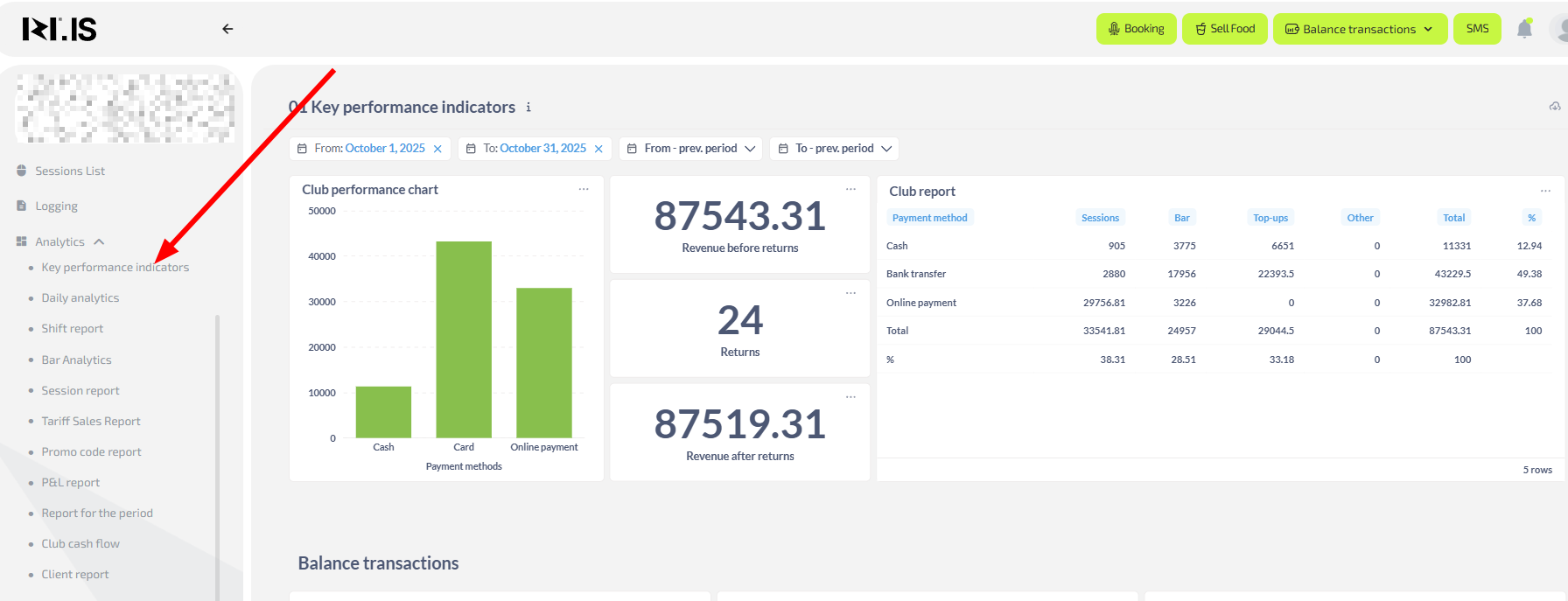 Show the owner or manager how to use the “Analytics” section to evaluate club performance, identify problem areas, and plan further actions. The goal is not just to look at numbers, but to understand what stands behind them and how to react.