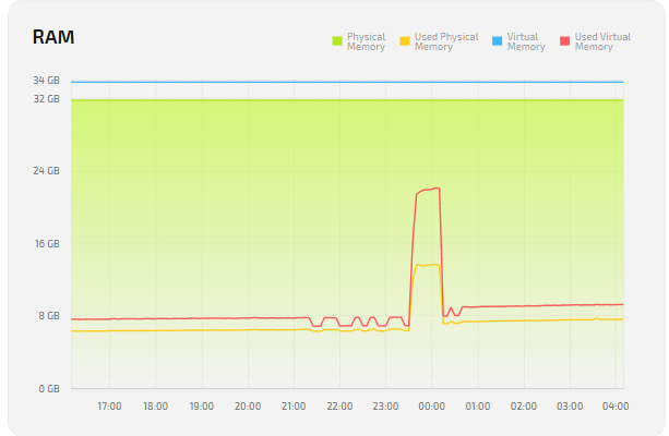 | Virtual Memory | Total virtual memory (RAM + page file). |