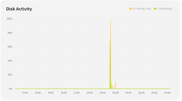 - Disk Activity — disk usage graph for read/write operations (in %).