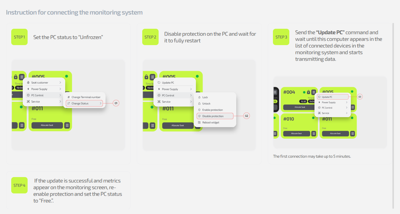 - Monitoring is enabled on gaming PCs (via IZI Monitoring client software)