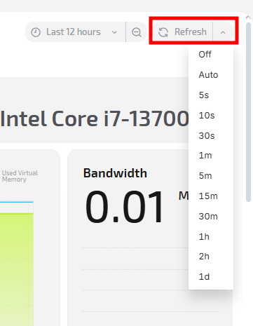 - Automatic refresh — select an interval (for example, 30 seconds, 1 minute, 5 minutes).