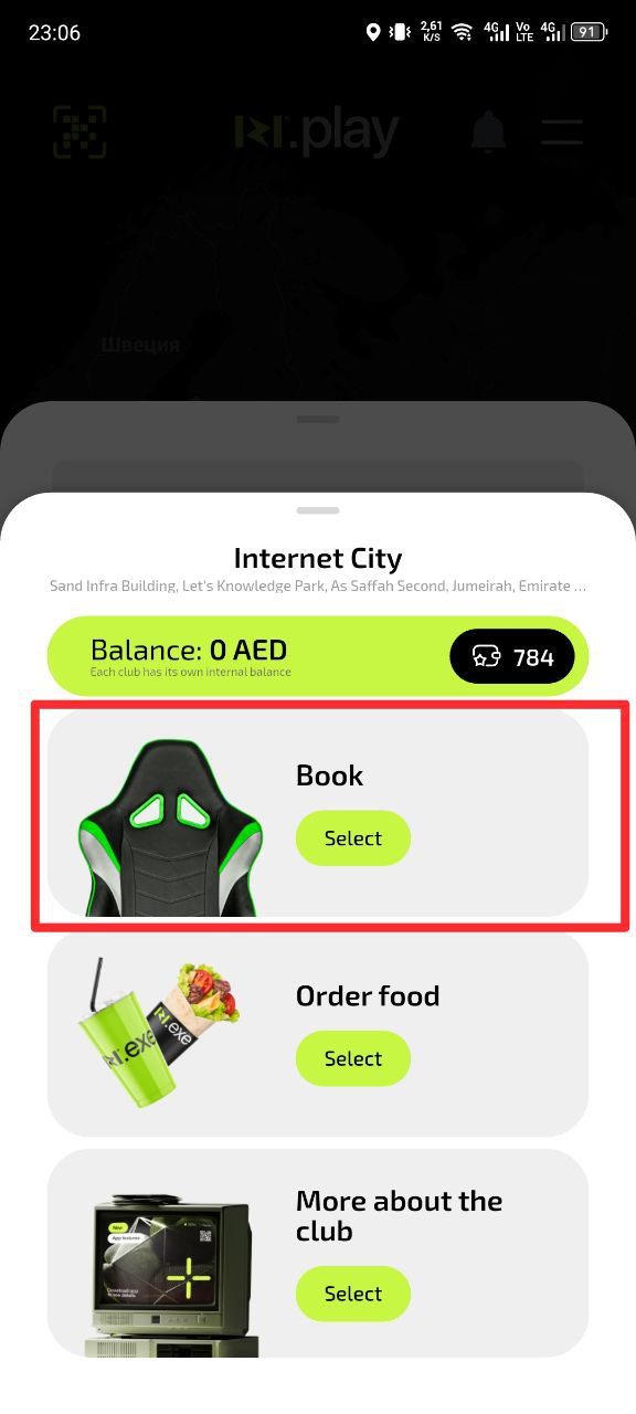 - On the club page tap the “Book” button