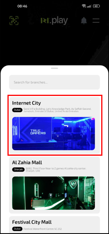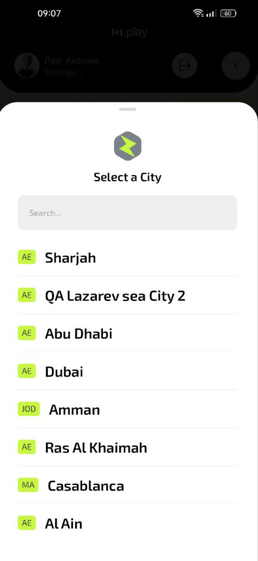 Why this matters: The app will show only those clubs that are located in the selected city, which simplifies search and booking.