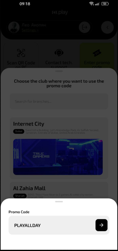 I can’t find the promo code sectionWhat to do: Check the main app menu — the “Enter promo code” icon. If you still cannot find it, ask the club administrator to help you. Why: The app interface may be updated, changing the position of elements.