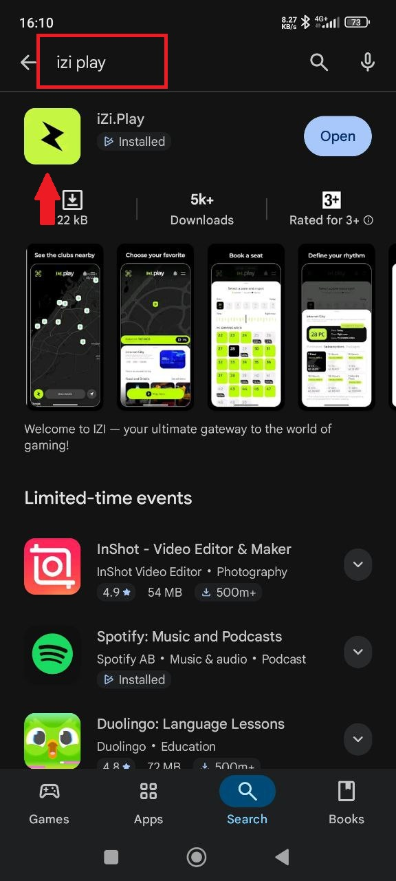 2. In search, type IZI play or follow the direct link: