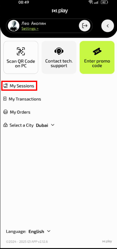 Learn how to view the history and current gaming sessions in the IZI app to control your expenses, check remaining time and analyse your gaming activity.