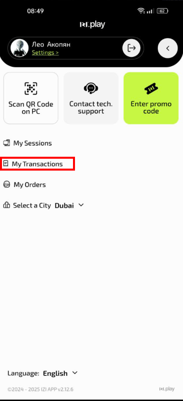 Why this matters: All financial operations are linked to your account and stored in the personal profile section.