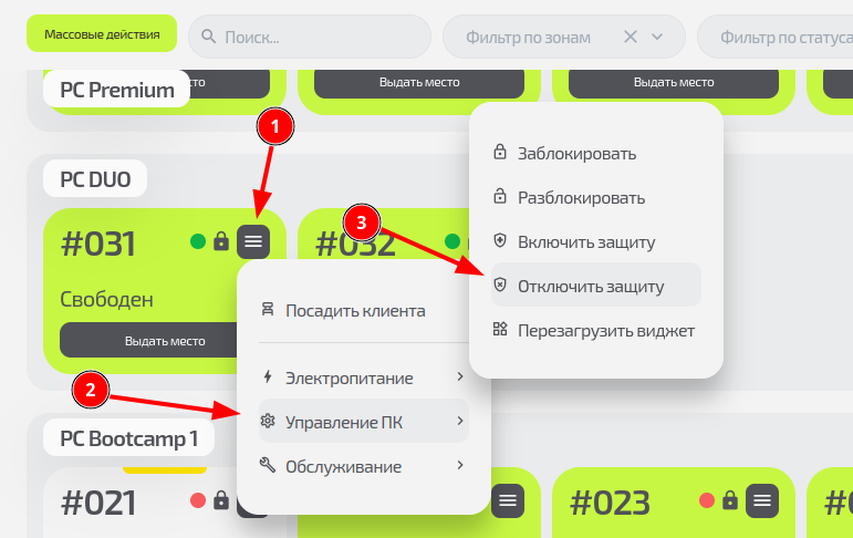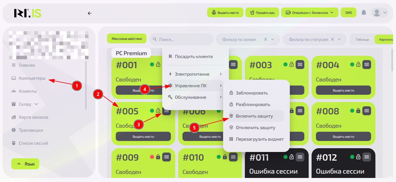 Показать, как работает система защиты игровых ПК в CRM IZI, для чего она нужна, и как правильно включать/отключать защиту в разных ситуациях.