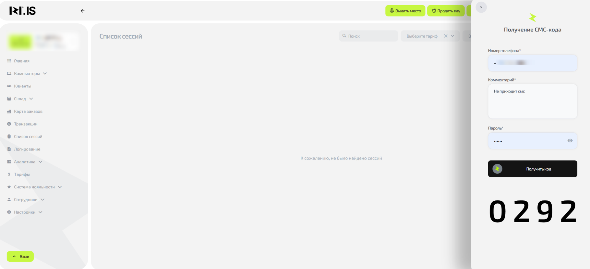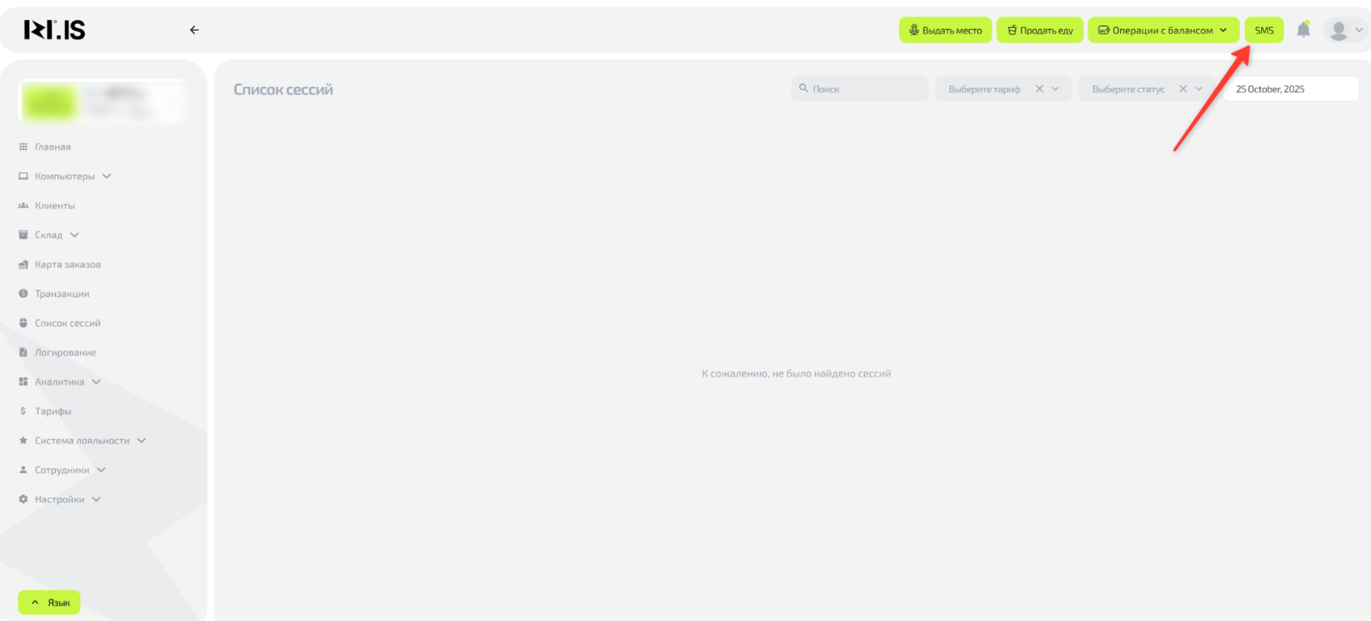 | Кнопка SMS неактивна | Проверьте права доступа; обратитесь к владельцу системы. |