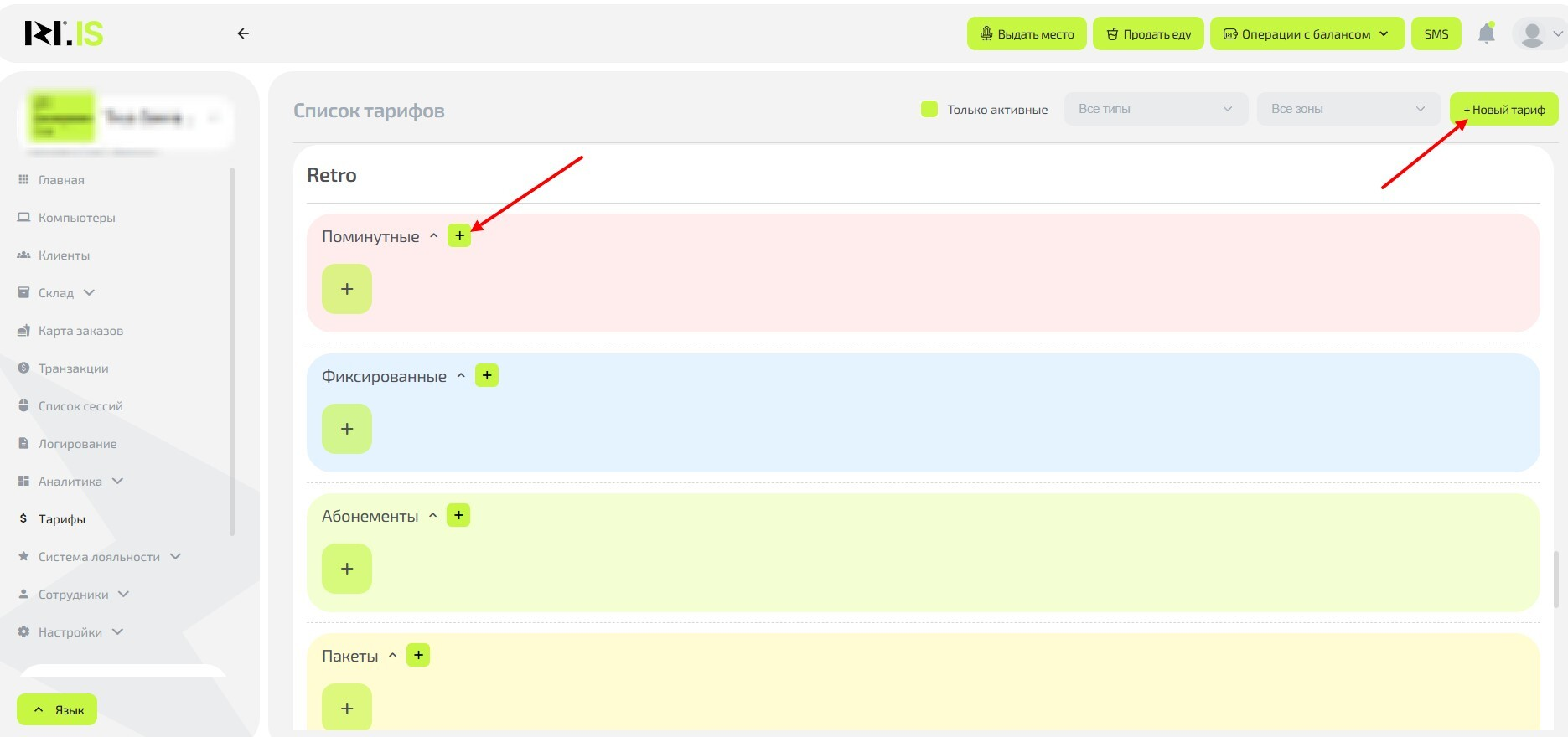 • Нажмите кнопку «+ Новый тариф» в правом верхнем углу