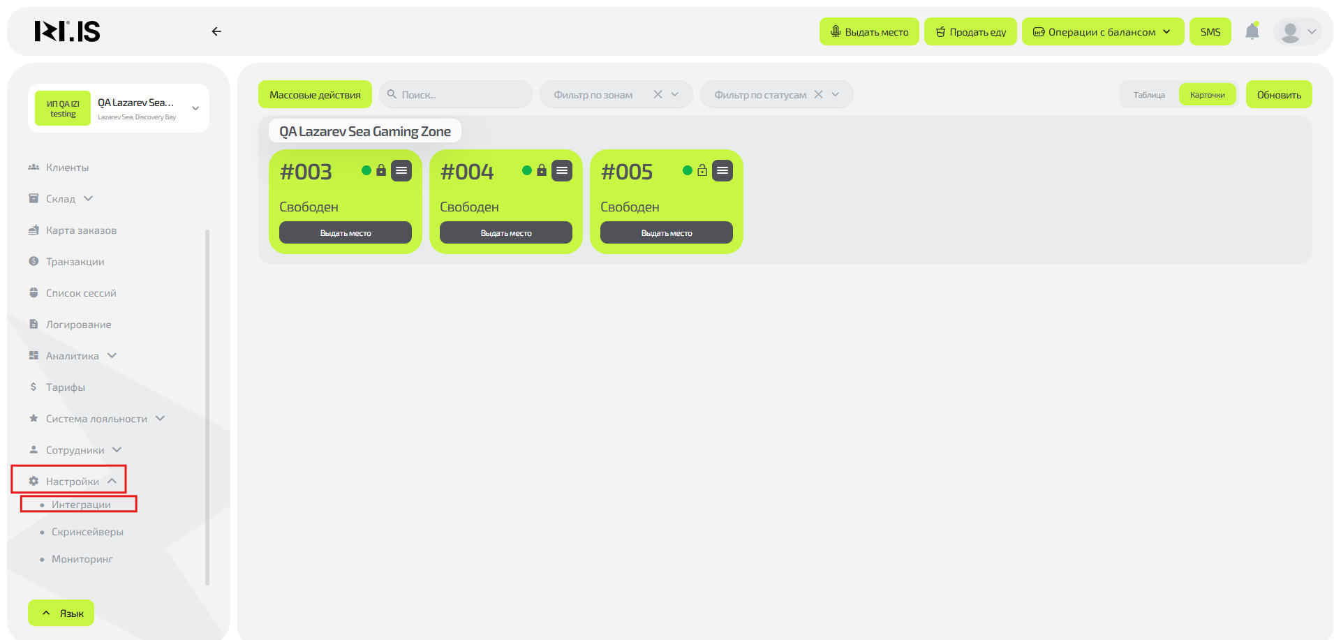 - В левом меню нажмите «Настройки», в выпадающем меню выберите Интеграции.