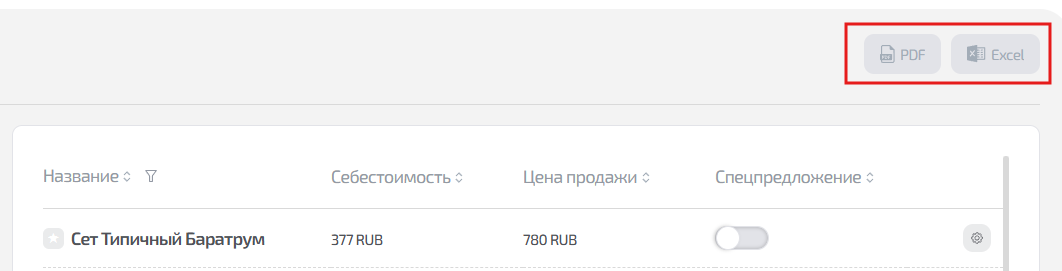 Наверху находится кнопка выгрузки в PDF или Excel, позволяющая сформировать отчёт по категориям.