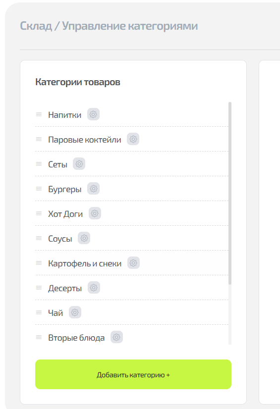 Здесь отображены все созданные категории бара. Для каждой категории доступно: