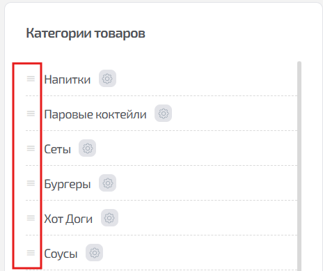 - Возможность менять порядок категорий, перетаскивая их за иконку «три полоски».