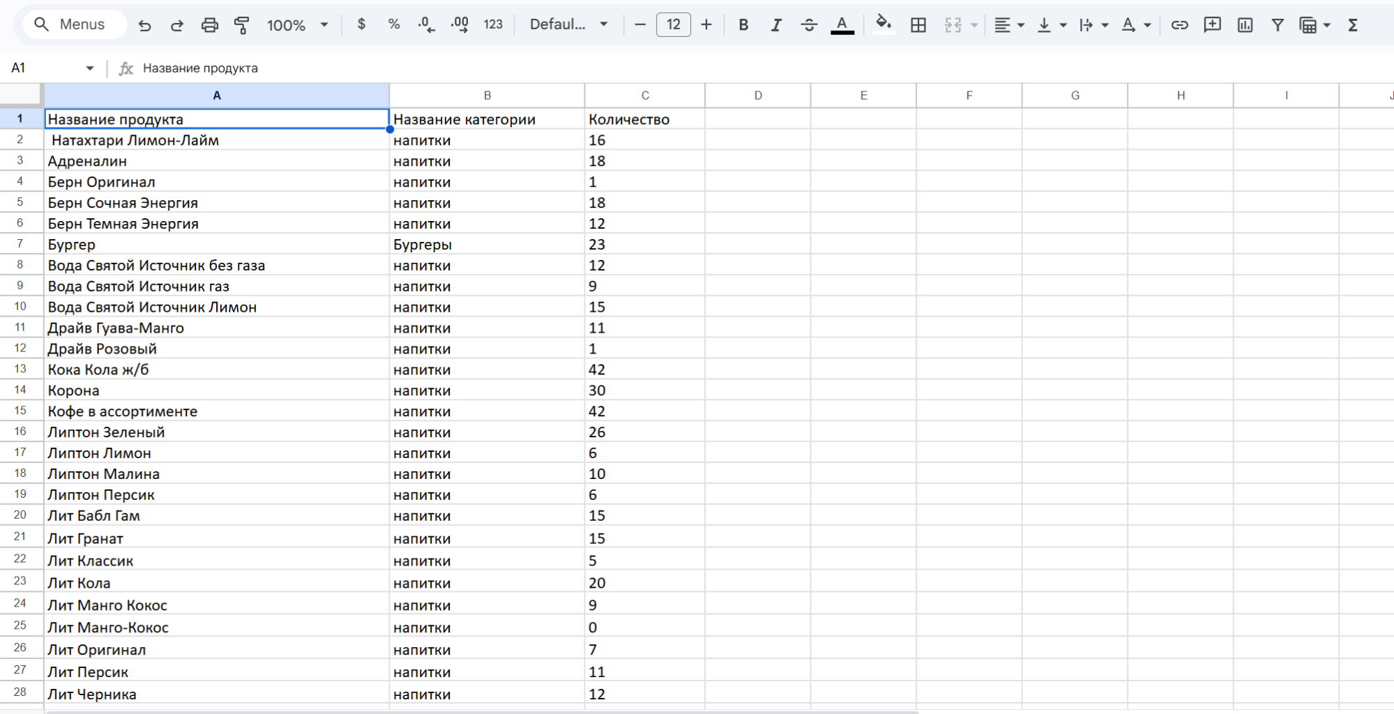 - Откройте файл — в нём будет полный список товаров с выбранными полями.