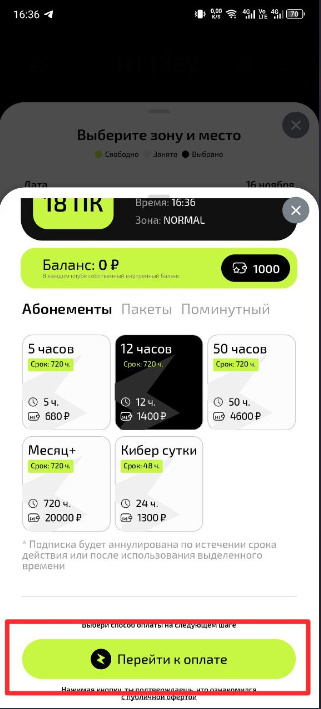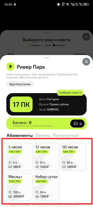 - Выберите один из вариантов: Абонемент, Пакет или Поминутный