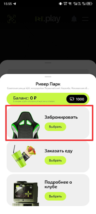 1. На странице клуба нажмите кнопку «Забронировать»