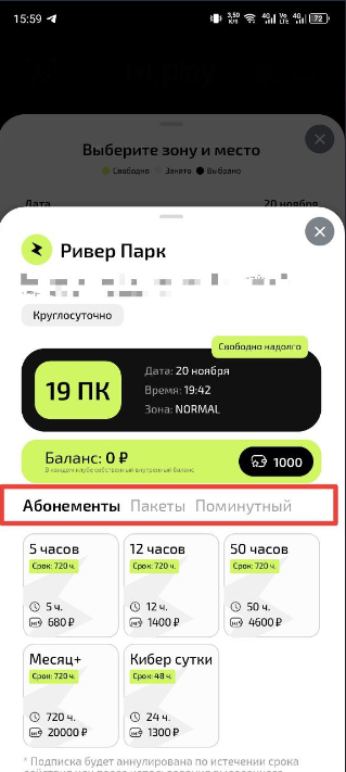 1. Выберите подходящий вариант: Абонемент, Пакет или Поминутный